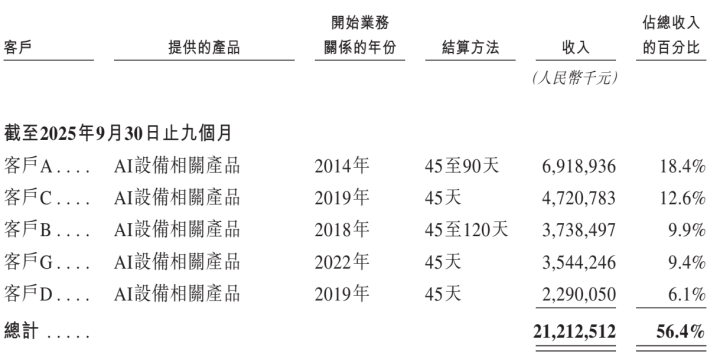 领益智造自诩为“巨人背后的隐形冠军”,但这顶光环背后是难以摆脱的路径依赖。招股书显示,公司前五大客户收入占比从2022年的49.1%攀升至2025年前三季度的56.4%,同期最大客户占比长期维持在20%左右。这种客户集中度过高的情况会大幅降低公司抗风险水平。